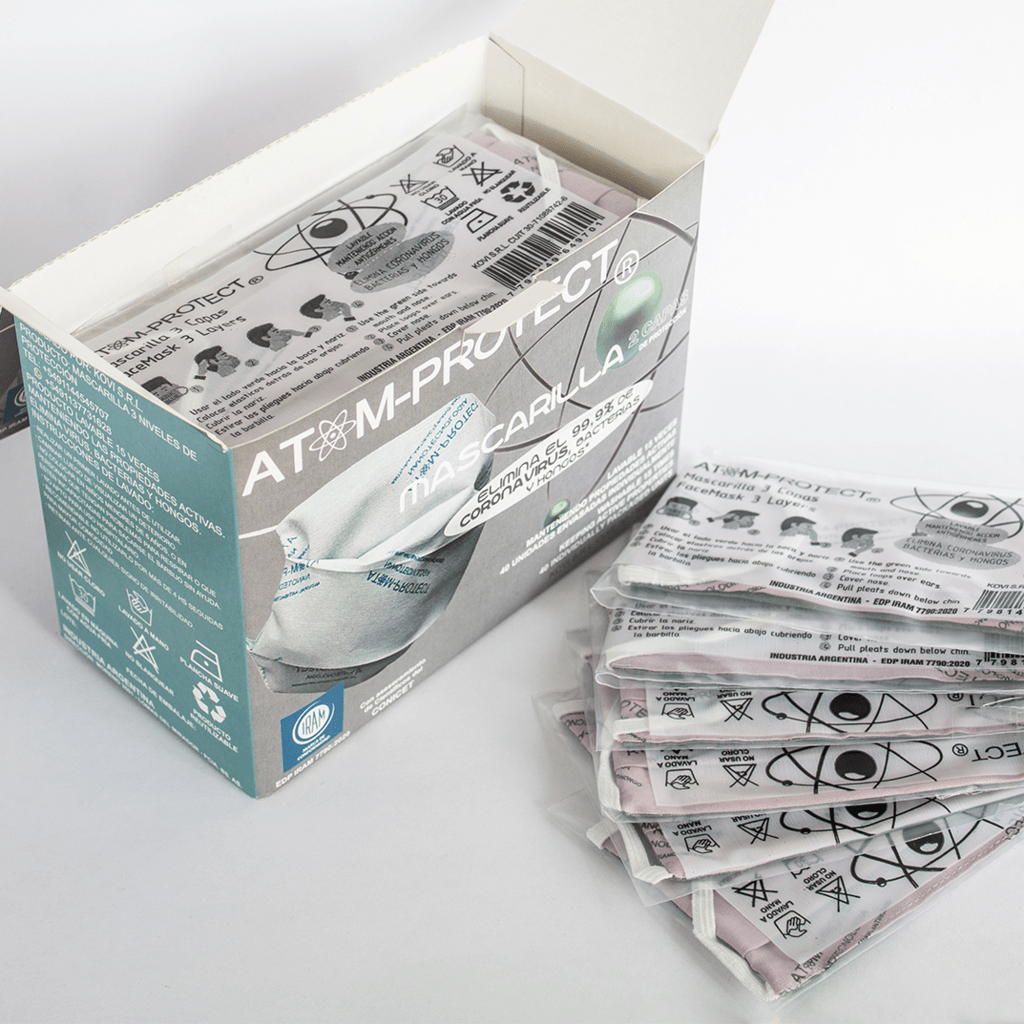Atom Protect / Atom Protect Caja Por 40 Unidades Compra En San Juan - Efectividad comparable a 15 barbijos descartables, lavable con agua y jabón.
